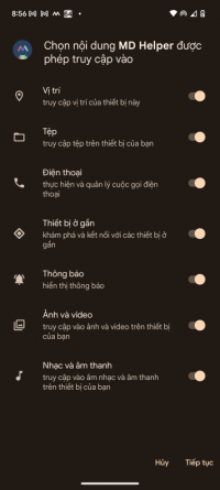 Sau khi ứng dụng được cài đặt và khởi chạy, bạn sẽ được yêu cầu cấp một loạt quyền cho ứng dụng trợ giúp như đã hiển thị bên dưới. Những quyền này cho phép ứng dụng trợ giúp thực hiện đầy đủ các chức năng mà nó hỗ trợ. Tại thời điểm này, bạn nên mở ứng dụng và tắt tối ưu hóa pin theo hướng dẫn.
